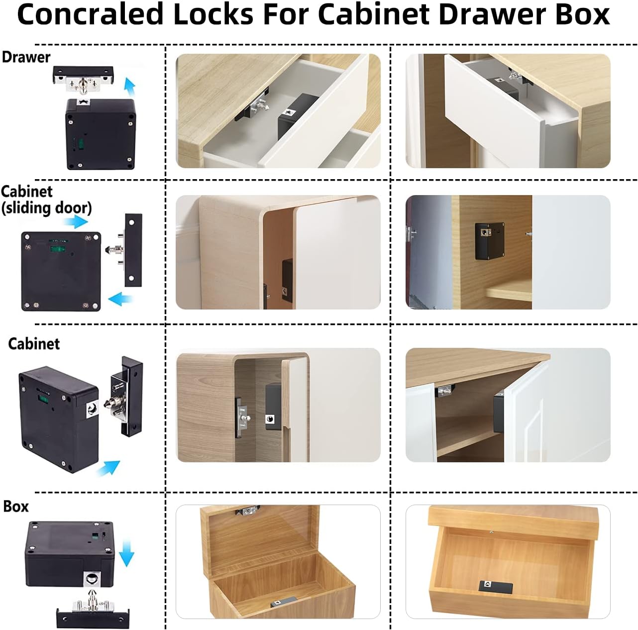 Secure drawers, cabinets, and boxes effortlessly with this concealed smart lock. Perfect for every corner of your home.